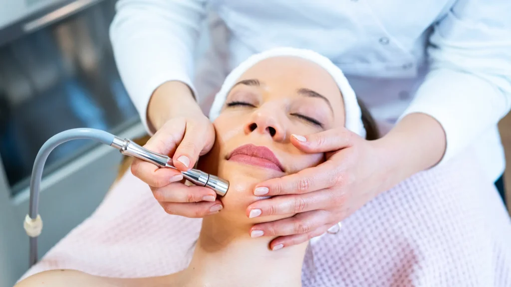 Die Diamant-Peeling Mikroexfoliation ist ein sicheres nichtinvasives Verfahren zur Glättung und Hauterneuerung. Unter Verwendung von dicht mit lasergeschliffenen Diamanten besetzten Aufsätzen werden abgestorbene Hautzellen entfernt und das Wachstum gesunder neuer Zellen angeregt. Das Ergebnis ist ein glatter ,strahlender und makelloser Teint.